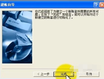 点击下一步对话框后点击“完成”按钮,账套建立完成,进入账套初始化。
