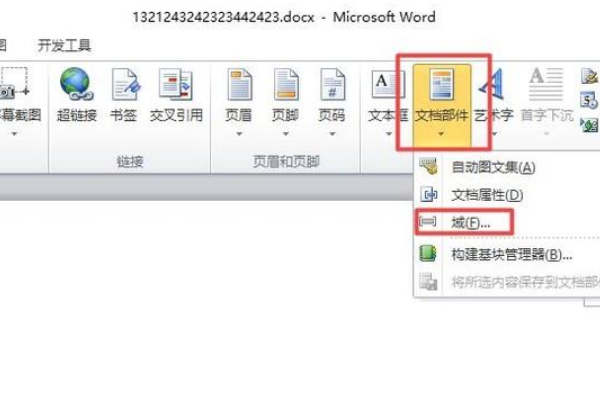 2、然后我们点击工具栏中的文档部件,弹出的界面,我们点击域。