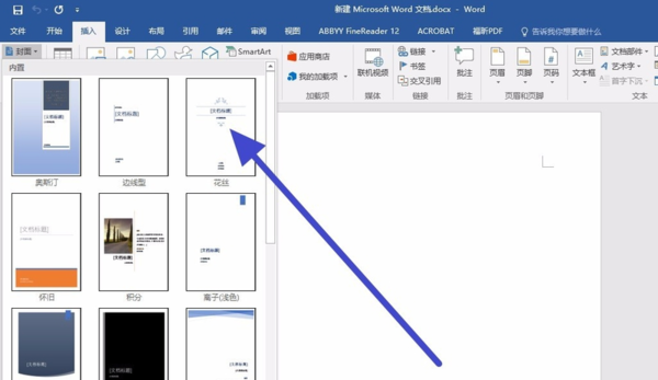 1、我们想给示例中的文档添加一个封面。