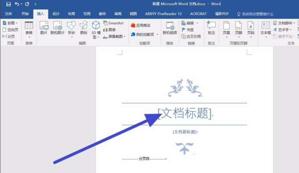 6、在文档的标题位置可以输入我们自己需要的文档标题,接着我们就可以设计一个属于自己的封面了