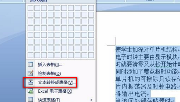 3、点击“表格”,选择“文本转化成表格”,点击。
