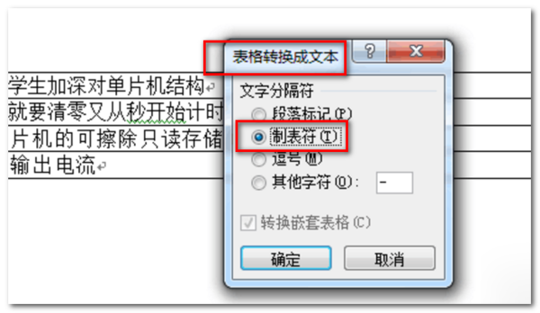8、找到转换为文本,选择“制表符”,点击确定即可。