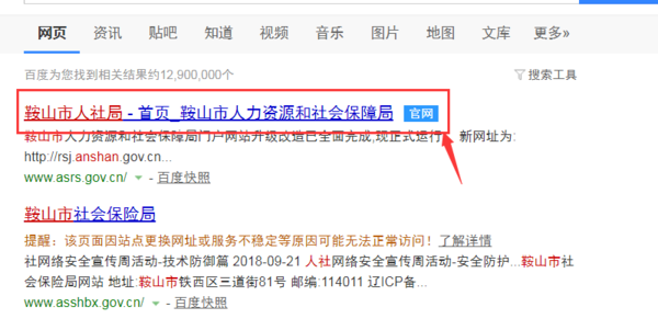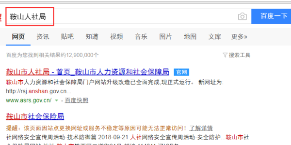 1、打开浏览器,用百度搜索【鞍山人社局】或者【鞍山市人力资源和社会保障局】网站。