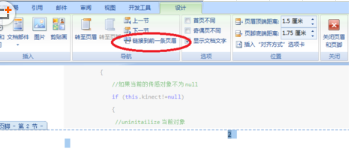 3、双击第2页的页脚处,进入页眉和页脚的编辑状态,点击工具栏中的“设计——(导航)链接到前一条页眉”按钮,使其使其退出高亮状态,如图所示。