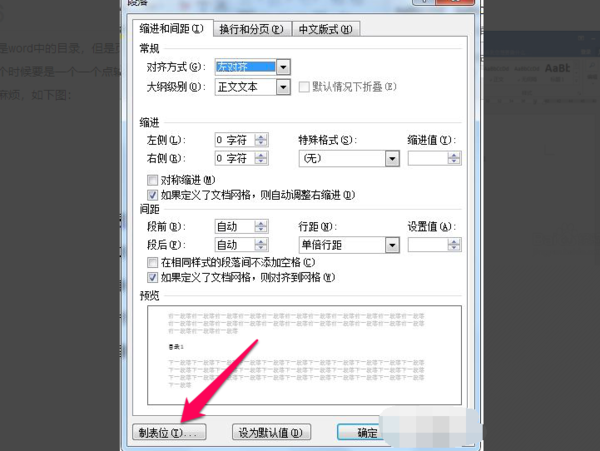 3、然后在弹出的【段落】设置页面点击【制表位】