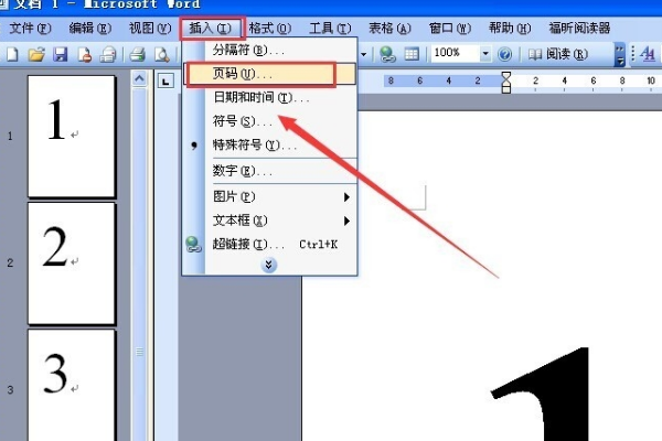 怎么在word2003里,设置页码?
