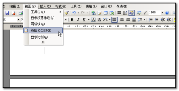 2、单击“视图”菜单下的“页眉和页脚”