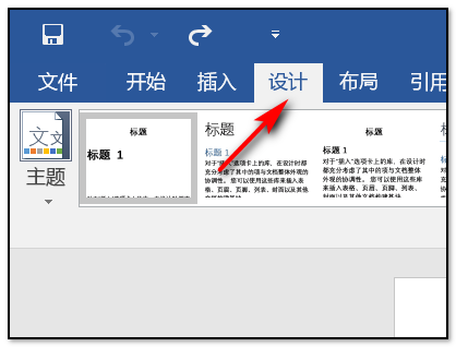 2、打开word2016文档以后,在上方的菜单栏中找到并点击“设计”的命令;