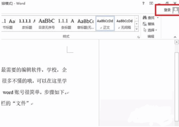 进入Word2013编辑主界面之后,点击主界面右上角的“登录”选项。