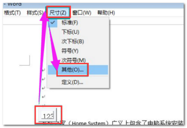 5、在公式文本框中键入具体数值,然后选中数值,依次单击菜单栏中的“尺寸”——“其他”命令。