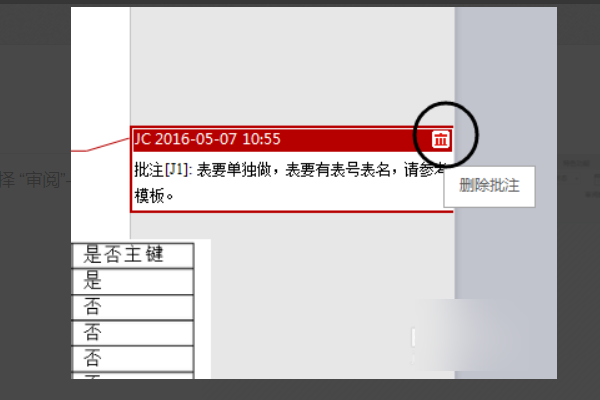 3、在批注的右上角有一个垃圾桶的标志,我们点击它后即可删除这条批注。
