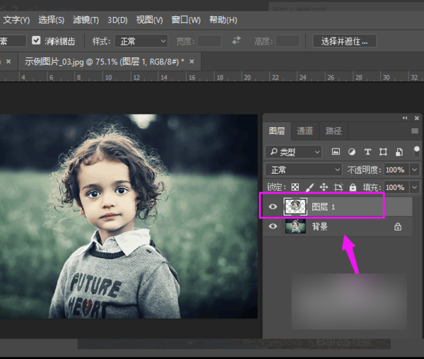 4、然后按“Ctrl+J”键进行复制,生成图层1。