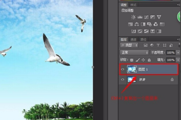 2、然后按快捷键“Ctrl+j”复制原图层。