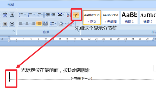 方法1:显示后删除,分节符和分页符的删除方法是一样的。