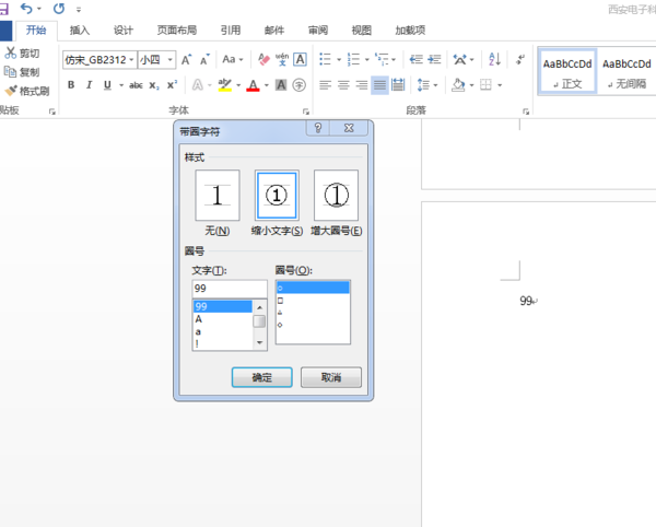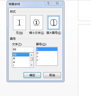3、弹出带圈对话框,选择增大圈号即可,如图所示。