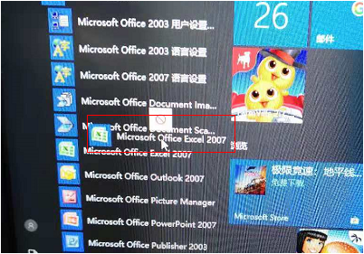 系统默认安装后,将开始菜单--程序里已安装好的应用程序直接拖拽到桌面上,以快捷方式存放于桌面。具体操作如下(如Excel)