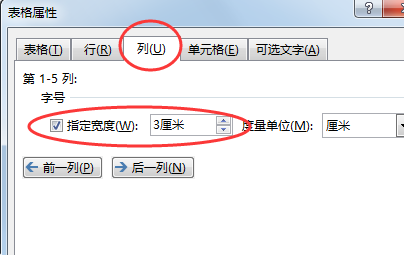 5、再选择“列”,勾选指定宽度前面的勾选框,输入需要的数字。