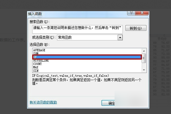 4、在弹出的“插入函数”选项卡里选择“if”函数。