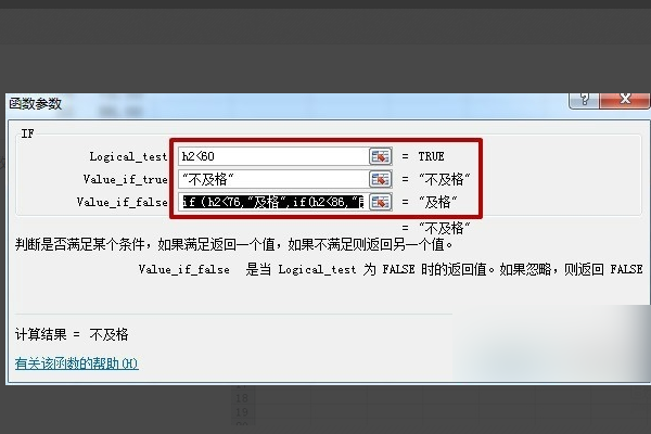 5、单击“确定”,在“函数参数”框里输入等级分类规则。