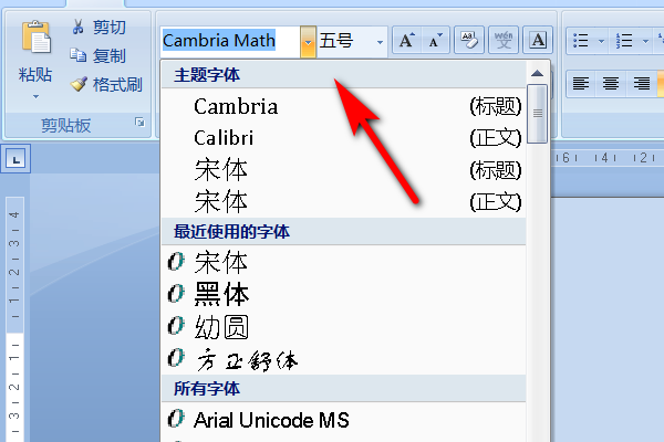 4、选中公式之后,点击其它字体,此时看到无论选择哪一种字体,公式的字体大小都无法改变,因此这种方法是不能使用的。