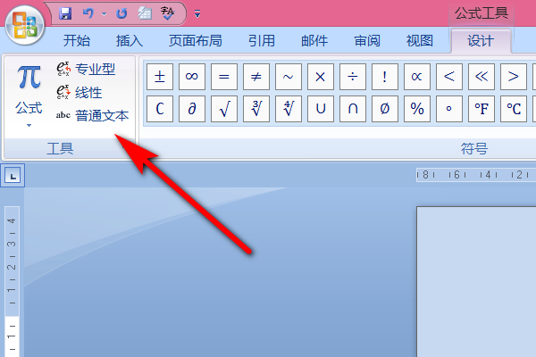 5、要改变公式字体的大小,选中公式,点击【公式工具】—【设计】—【abc普通文本】。