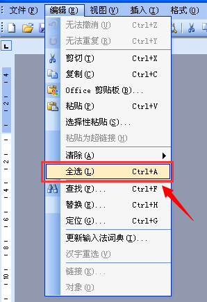 1、在编辑菜单下,将Word文件的内容全部选中;