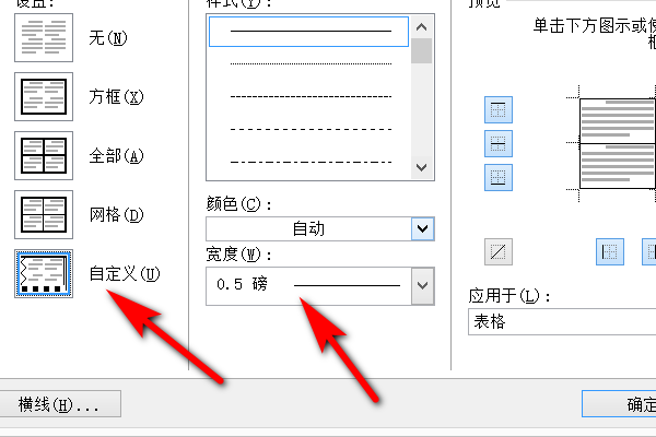4.然后点击自定义选项,并在宽度里面选择需要设置的磅数。