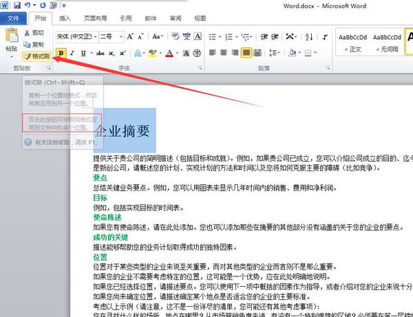 2.双击”格式刷'图标即可连续对其他文本进行标题格式设置(取消格式刷则再次单击格式刷图标即可)。