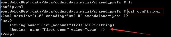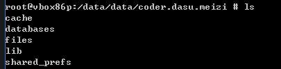②借助ls、cd命令进入应用数据地址:/data/data/{包名如:coder.dasu.meizi}/