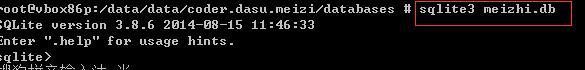 1.执行完 sqlite3 meizi.db 后,会进入一个sqlite命令状态,在这里可以使用sql语言来进行查询,也可以使用.help来查看sqlite3提供的一些快速命令.