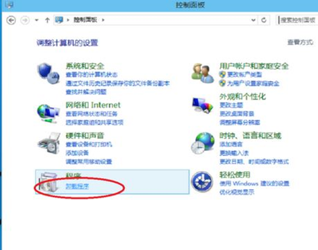 2、在打开的控制面板上点击程序处的“卸载程序”;