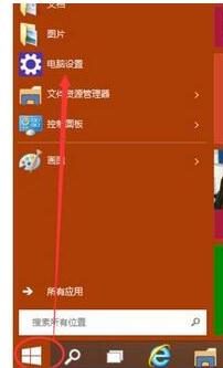1、点击Win10开始菜单,在弹出菜单里选择电脑设置,如下图所示。