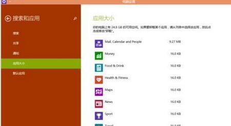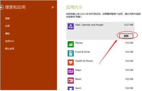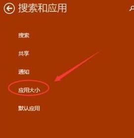 3、点击搜索和应用下面的应用大小,如下图所示。