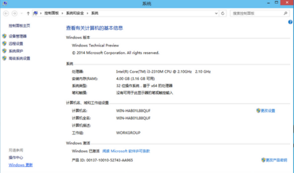 3、在打开的系统属性的窗口,点击左上角的“控制面板主页”窗口。如下图。要快速打开win10系统“控制面板”,还可以在开始菜单的搜索框中输入”contrl panel“点击搜索即可。