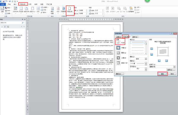 word文档中出现一个框框,也就是word的页面设置了页面边框,取消或添加方法如下: