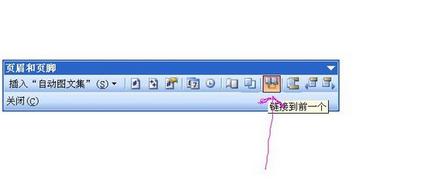 4、“插入--页码--格式--数字页码中选A,B,C类型”,从页眉和页脚工具栏中,点一下“链接到前一个”,让他变灰色,这样第二节的页码就会与第一节不同,即第一节封面是没有页码的,不用插入,第二节用A表示,同样方法,去到第三节,页码格式选1,2,3……,关键的一步是点一下“链接到前一个”,让他变灰色!(在页眉和页脚工具栏倒数第4个,如图)