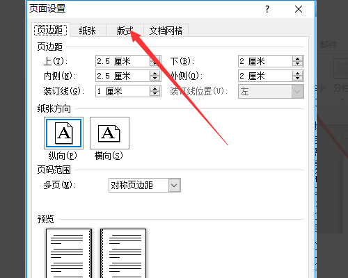 3、选择页面设置的版式设置。