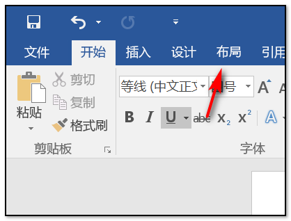 2、打开word2016文档软件以后,在上方的菜单栏中找到并点击“布局”的命令;