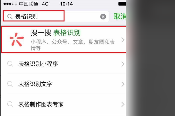 1、首先,将电脑上的图片存到手机上,打开手机微信,点击“通讯录”,在顶部搜索框中,输入“表格识别”,点击第一项。