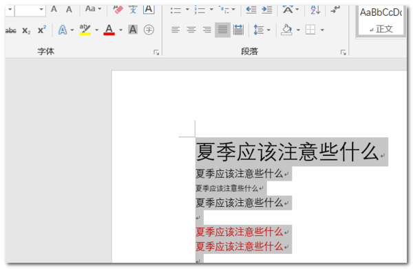 3、来看一下最后的效果,所有的文字格式都已经统一了。