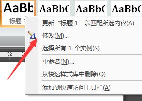 这个标题属于1级标题,假如文档中有多处一级标题,我们想统一修改1级标题的样式,就可以如图所示: