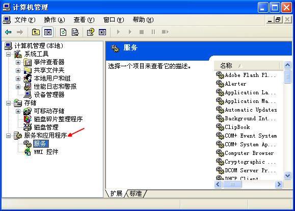 xp系统是右键我的电脑--管理--服务和应用程序--服务
