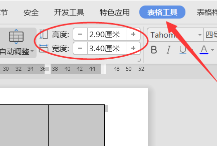 5、在“表格工具”中对表格的“高度”和“宽度”数值进行手动调整也可以调整表格大小。
