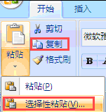 3、将光标定位在目标处,单击开始选择性粘贴;