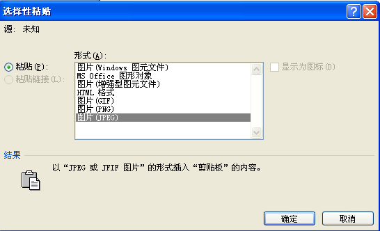 4、弹出选择性粘贴对话框,选择l图片jpeg即可,如图所示。