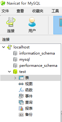 2、打开第三方软件Navicat for Mysql,并登陆到指定数据库。如图,即为登陆本地的test库。