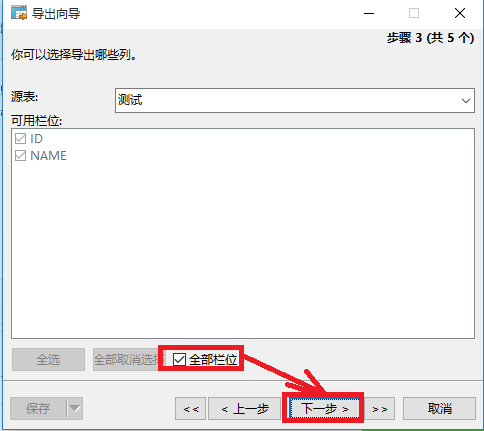 13、选择“全部栏位”,然后点击“下一步”。