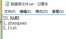 1、文本文件如图,其中两个字段,用逗号分隔。其中首行代表数据表的字段名。