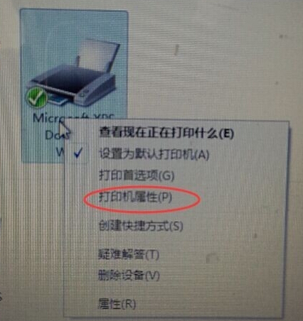 3.单击右键,找到“打印机属性”