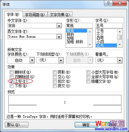 在打开窗口中“上标”前面勾选,点击确定: